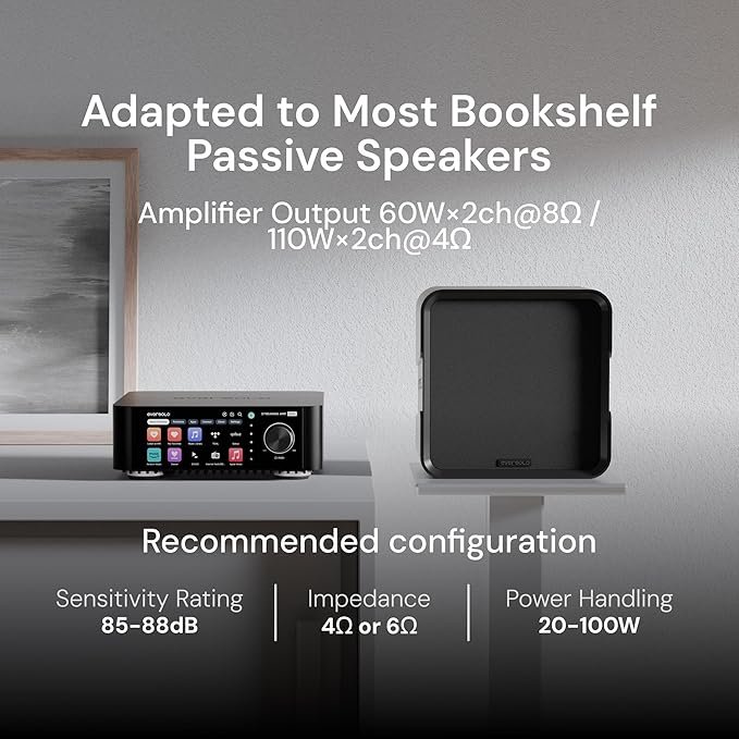 The WiiM Amp Pro is the ultimate compact streaming amplifier, designed to deliver audiophile-grade sound to your passive speakers. It significantly upgrades the original Eversolo WiiM Amp with a premium ESS ES9038Q2M DAC, PFFB (Post Filter Feedback) technology for ultra-low distortion, and next-gen Wi-Fi 6E connectivity. With 60 watts per channel at 8 ohms (120W at 4 ohms), it drives everything from bookshelf monitors to floorstanding towers with authority and clarity.